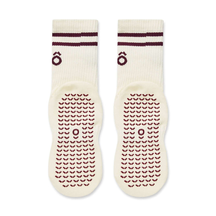 Sla een voorraadje in van onze antislip, zachte katoenen Reformer Pilates sokken in de kleur 'timber wolf' met extra gripvaste zolen om je houding te verfijnen en je letterlijk met beide benen op de grond te houden.