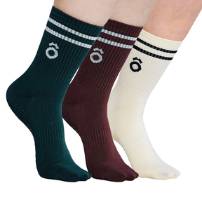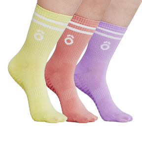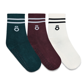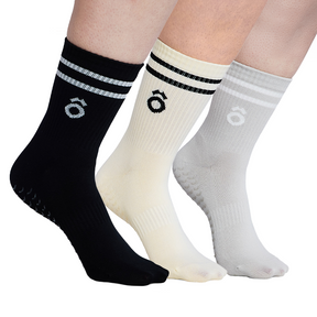 Sla je slag met onze speciale essential crew 3-pack bundel. Antislip zachte katoenen Reformer Pilates sokken in zwart, wit en timberwolf, met extra gripvaste zolen om je houding te verfijnen en je letterlijk op de grond te houden.
