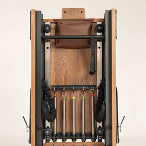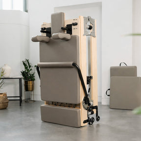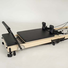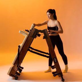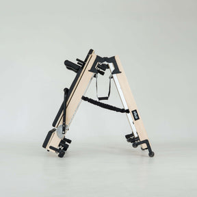 The Original FOLD Reformer made of real American wood and is designed to fold in seconds, store neatly in compact spaces, and manoeuvre smoothly around your home.