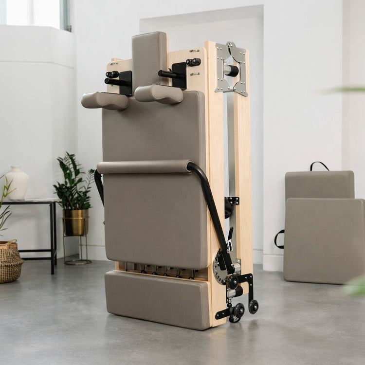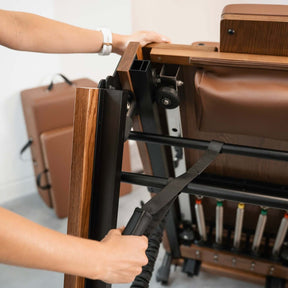 Our patented, spring-assisted Easi-Fold™ mechanism makes the Original FOLD Reformer the safest and easiest studio-quality folding reformer, exclusively featuring the only Easi-Fold™ design in the world.