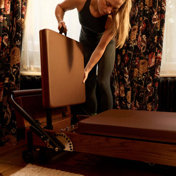 Stylish studio-quality meets uncomplicated at-home performance. Our compact, but sturdy foldable reformer bed has flex and fits into homes of any size and style.