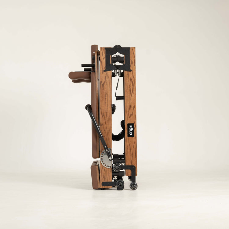 The Original FOLD Reformer made of real wood and is designed to fold in seconds, store neatly in compact spaces, and manoeuvre smoothly around your home. With FOLD it’s easy to introduce wellness into your life and home.
