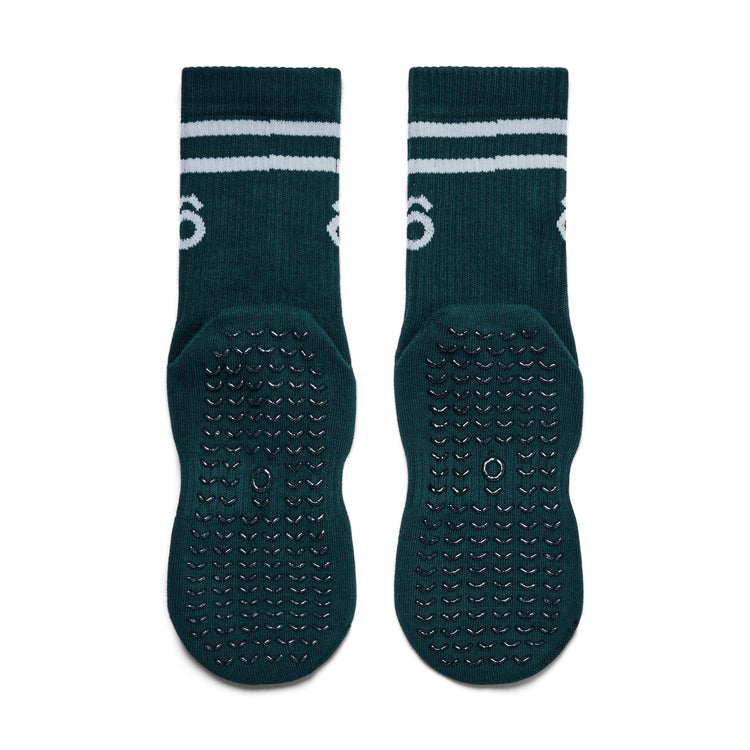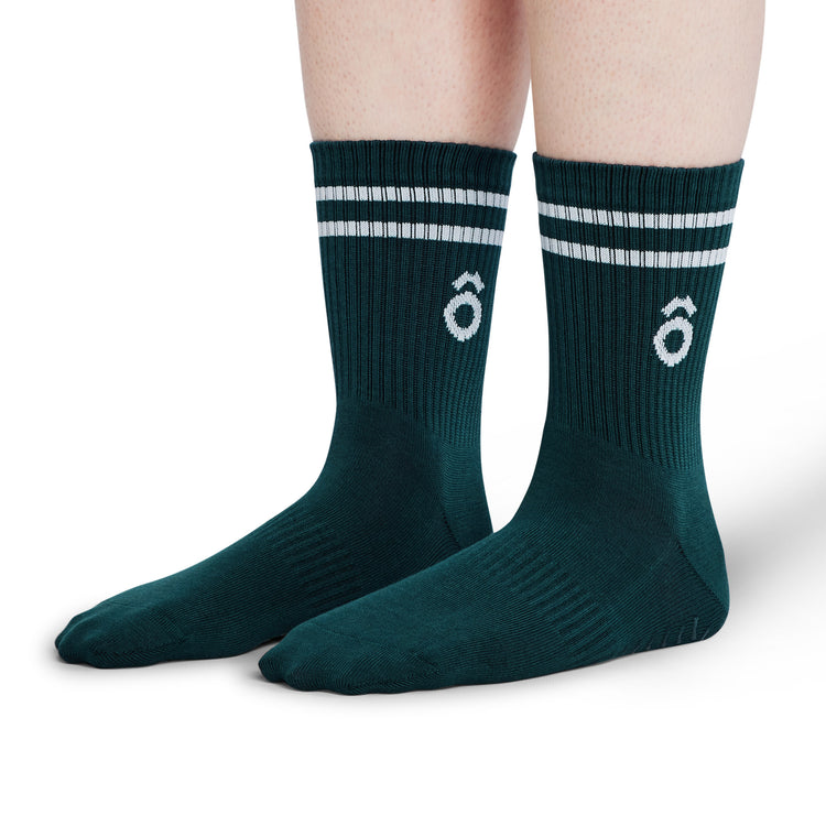 ÔWEAR Crew Sporty Stripes Pilates Grip Socks - Forest Green