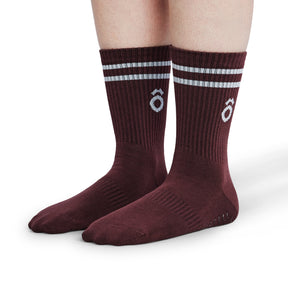 ÔWEAR Crew Sporty Stripes Pilates Grip Socks - Magenta