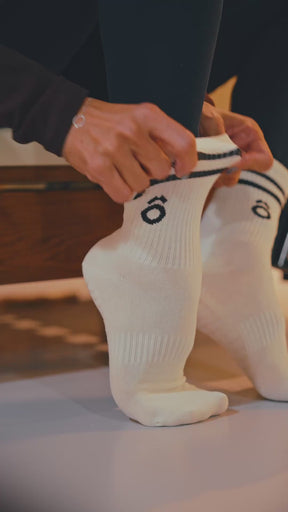 ÔWEAR Crew Sporty Stripes Pilates Grip Socks - White