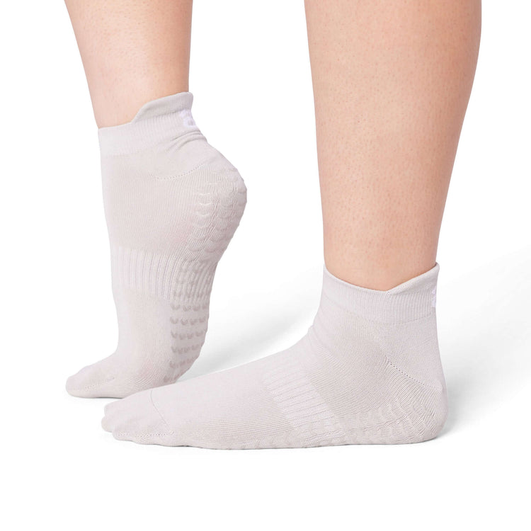 Move with confidence from first lunge to final stretch in ÔWEAR Bootie Low Rise Pilates Socks in timber wolf Designed for reformer, mat, and everything in between, they keep you grounded, supported, and ready to flow.
